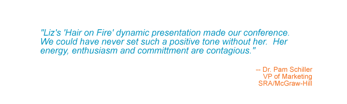 Liz will travel to meet your needs at conferences, training sessions, meetings and retreats.